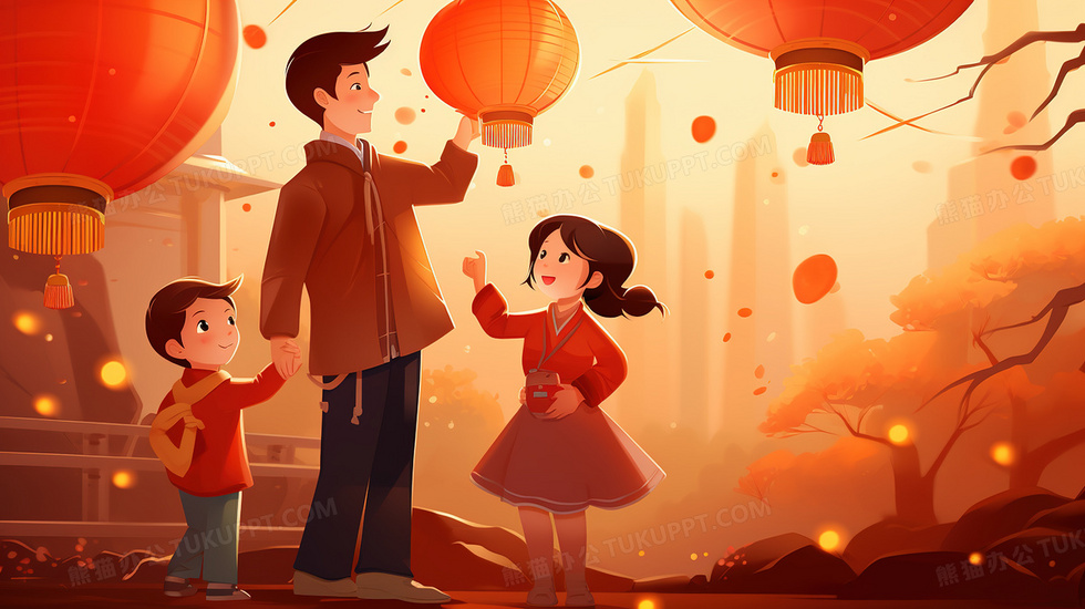 本作品内容为庆祝新年里温馨的一家三口插画, 格式为 jpg, 大小5 MB, 图片尺寸为2912 x 1632, 源文件无水印, 欢迎使用熊猫办公。 如认为平台内容涉嫌侵权,可通过邮件:tousu@tukuppt.com提出书面通知,我们将及时处理。