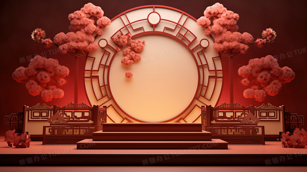 本作品内容为中国风红色花朵圆形舞台设计概念图片, 格式为 jpg, 大小5 MB, 图片尺寸为2912 x 1632, 源文件无水印, 欢迎使用熊猫办公。 如认为平台内容涉嫌侵权,可通过邮件:tousu@tukuppt.com提出书面通知,我们将及时处理。