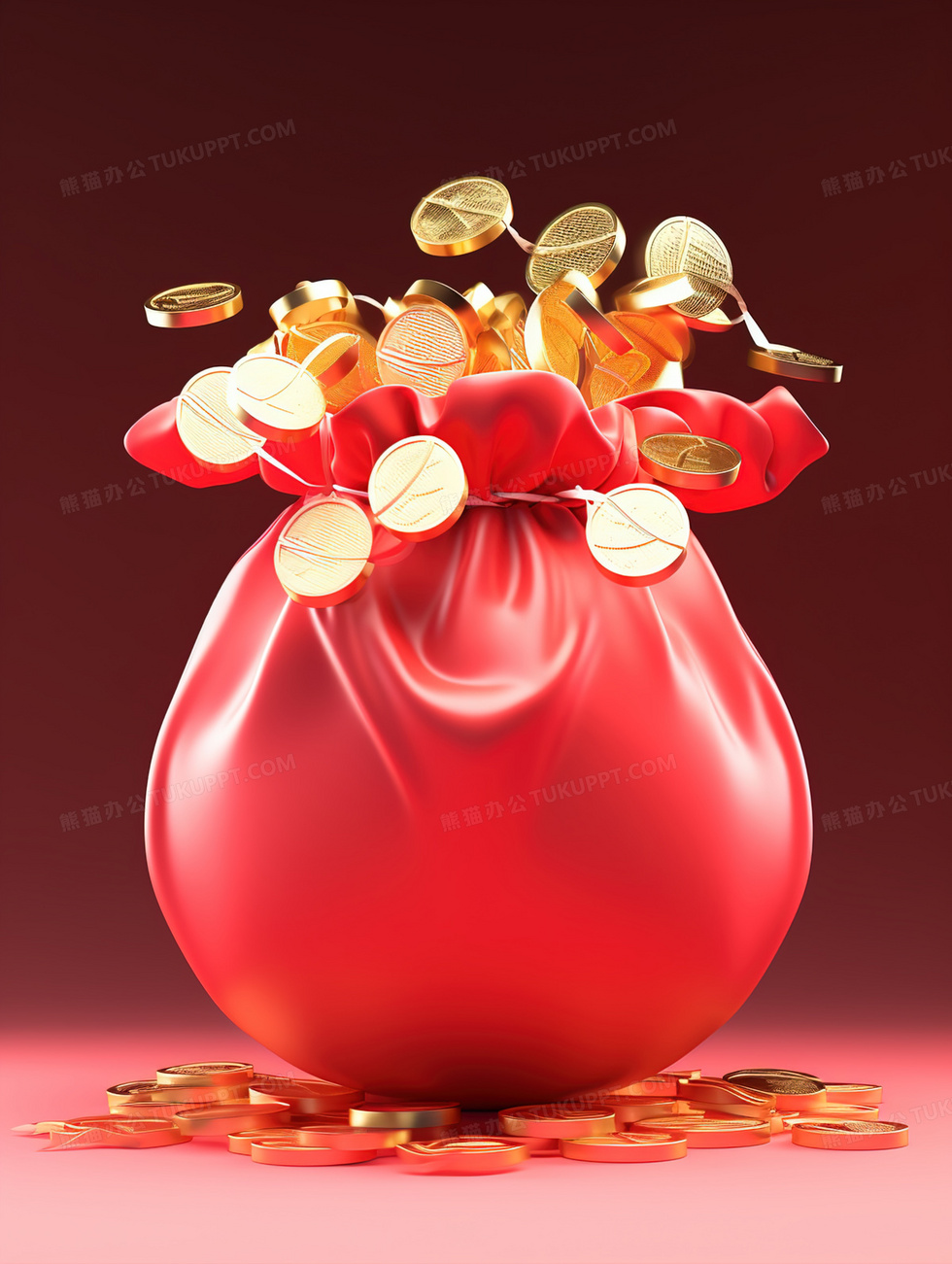 本作品内容为一个装有金币的红色福袋插画, 格式为 jpg, 大小4 MB, 图片尺寸为1856 x 2464, 源文件无水印, 欢迎使用熊猫办公。 如认为平台内容涉嫌侵权,可通过邮件:tousu@tukuppt.com提出书面通知,我们将及时处理。