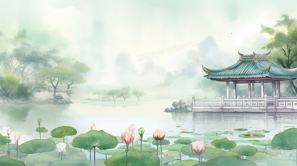 本作品内容为中国风水墨画夏日荷塘湖景和古典凉亭, 格式为 jpg, 大小3 MB, 图片尺寸为2912 x 1632, 源文件无水印, 欢迎使用熊猫办公。 如认为平台内容涉嫌侵权,可通过邮件:tousu@tukuppt.com提出书面通知,我们将及时处理。