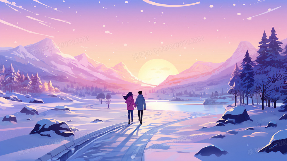本作品内容为冬天雪地人物散步玩耍溜冰插画, 格式为 jpg, 大小6 MB, 图片尺寸为2912 x 1632, 源文件无水印, 欢迎使用熊猫办公。 如认为平台内容涉嫌侵权,可通过邮件:tousu@tukuppt.com提出书面通知,我们将及时处理。