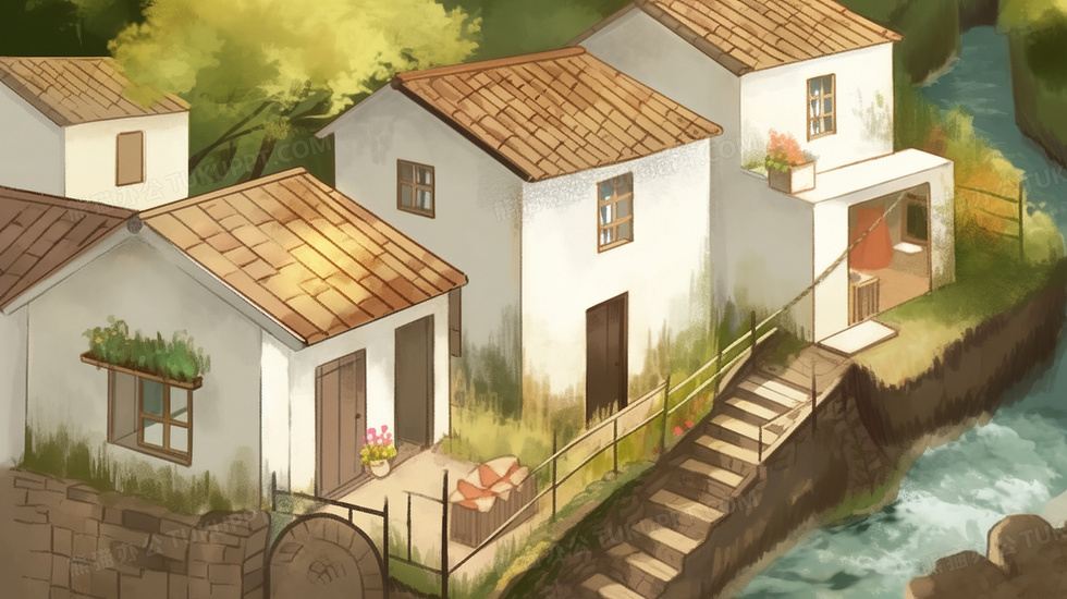 本作品内容为中国农村旧房子插画, 格式为 jpg, 大小3 MB, 图片尺寸为2912 x 1632, 源文件无水印, 欢迎使用熊猫办公。 如认为平台内容涉嫌侵权,可通过邮件:tousu@tukuppt.com提出书面通知,我们将及时处理。
