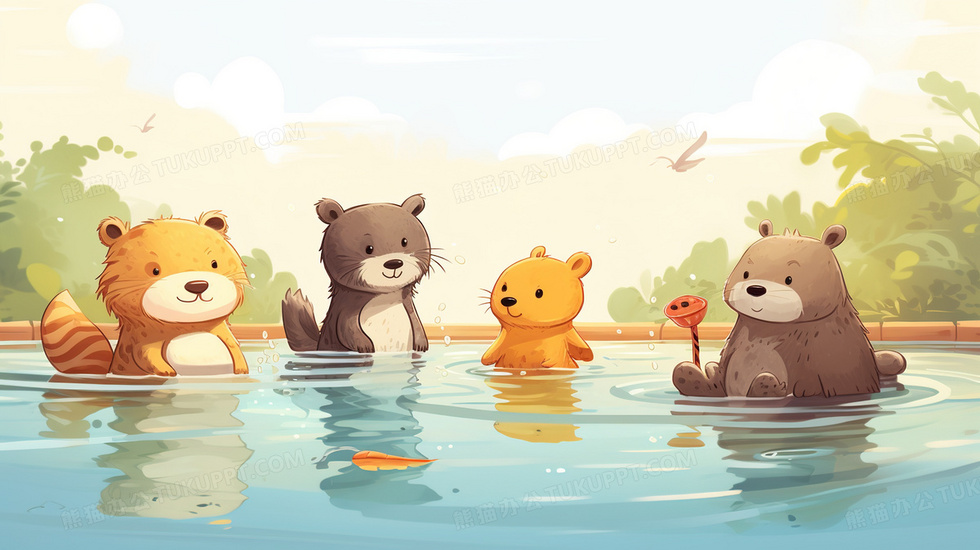 本作品内容为彩色水彩水池边的小动物插画, 格式为 jpg, 大小4 MB, 图片尺寸为2912 x 1632, 源文件无水印, 欢迎使用熊猫办公。 如认为平台内容涉嫌侵权,可通过邮件:tousu@tukuppt.com提出书面通知,我们将及时处理。