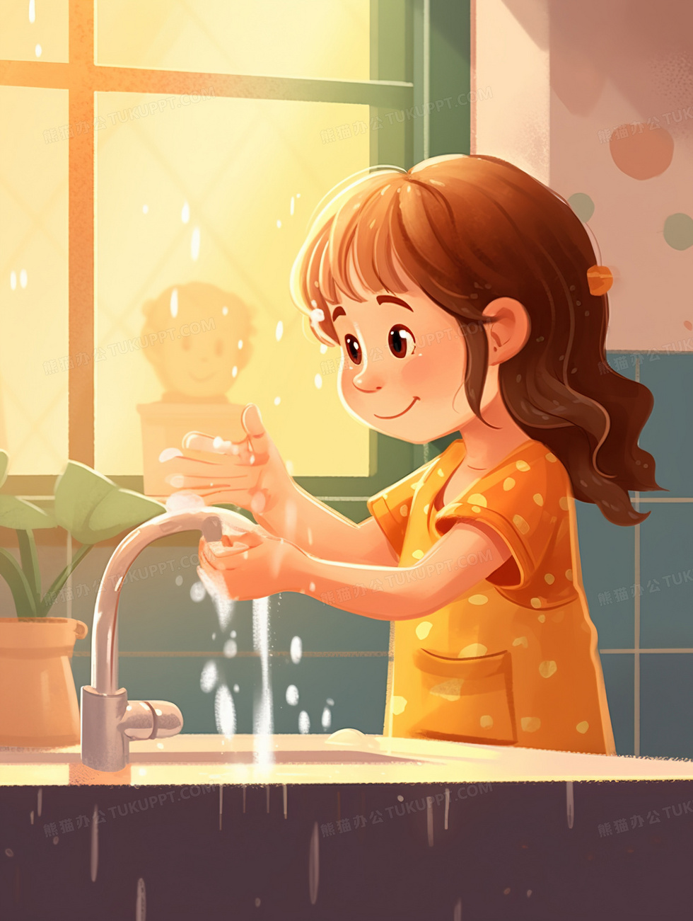 本作品内容为全球洗手日女孩洗手卡通插画, 格式为 jpg, 大小4 MB, 图片尺寸为1856 x 2464, 源文件无水印, 欢迎使用熊猫办公。 如认为平台内容涉嫌侵权,可通过邮件:tousu@tukuppt.com提出书面通知,我们将及时处理。