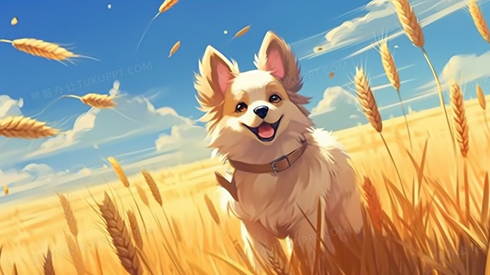 本作品内容为在成熟的金色麦田上玩耍的快乐小狗插画, 格式为 jpg, 大小5 MB, 图片尺寸为2912 x 1632, 源文件无水印, 欢迎使用熊猫办公。 如认为平台内容涉嫌侵权,可通过邮件:tousu@tukuppt.com提出书面通知,我们将及时处理。