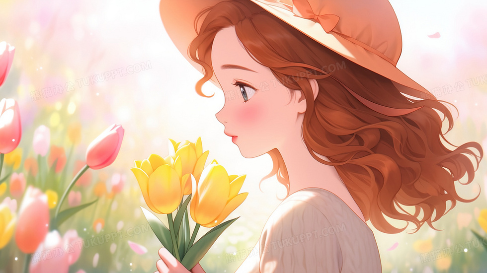 本作品内容为春季阳光下拿着鲜花的女孩插画, 格式为 jpg, 大小2 MB, 图片尺寸为2912 x 1632, 源文件无水印, 欢迎使用熊猫办公。 如认为平台内容涉嫌侵权,可通过邮件:tousu@tukuppt.com提出书面通知,我们将及时处理。
