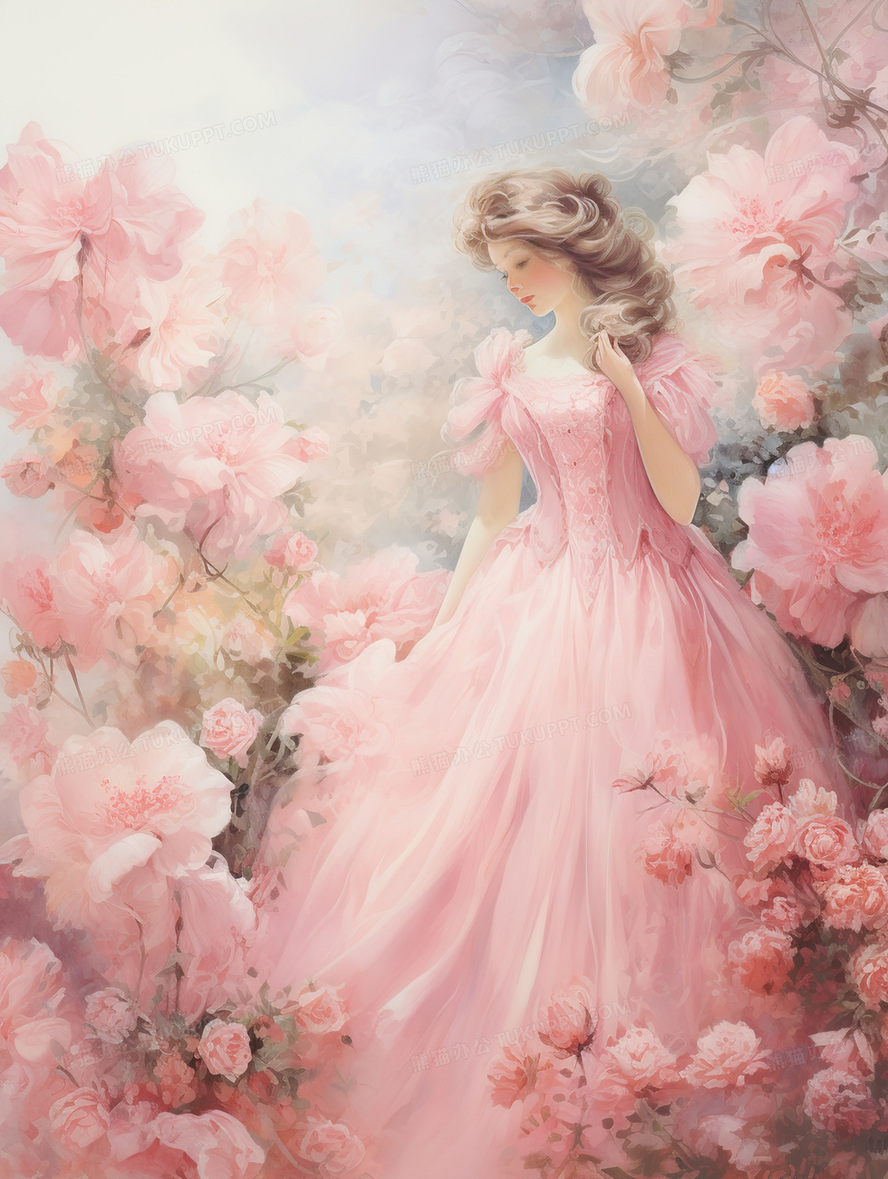 本作品内容为油画感粉色花朵中的少女插画, 格式为 jpg, 大小6 MB, 图片尺寸为1856 x 2464, 源文件无水印, 欢迎使用熊猫办公。 如认为平台内容涉嫌侵权,可通过邮件:tousu@tukuppt.com提出书面通知,我们将及时处理。