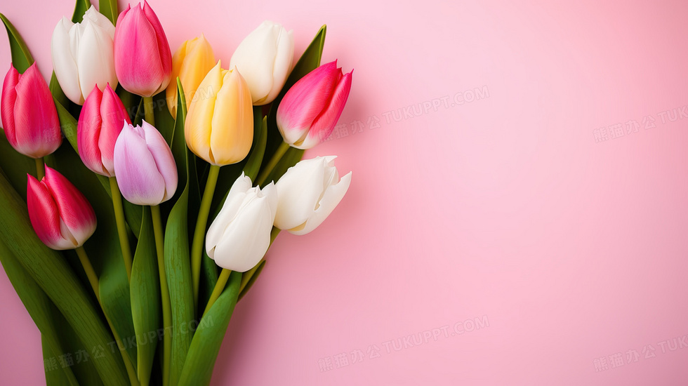 本作品内容为一束彩色郁金香在粉色背景上插画, 格式为 jpg, 大小4 MB, 图片尺寸为2912 x 1632, 源文件无水印, 欢迎使用熊猫办公。 如认为平台内容涉嫌侵权,可通过邮件:tousu@tukuppt.com提出书面通知,我们将及时处理。