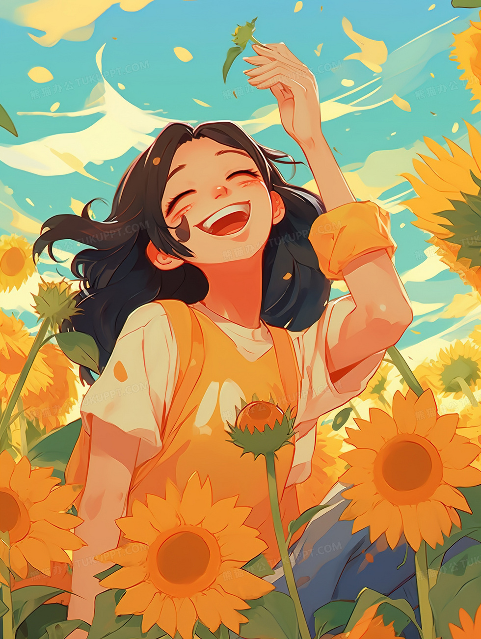 本作品内容为在金色向日葵花丛中的阳光女孩插画, 格式为 jpg, 大小5 MB, 图片尺寸为1856 x 2464, 源文件无水印, 欢迎使用熊猫办公。 如认为平台内容涉嫌侵权,可通过邮件:tousu@tukuppt.com提出书面通知,我们将及时处理。