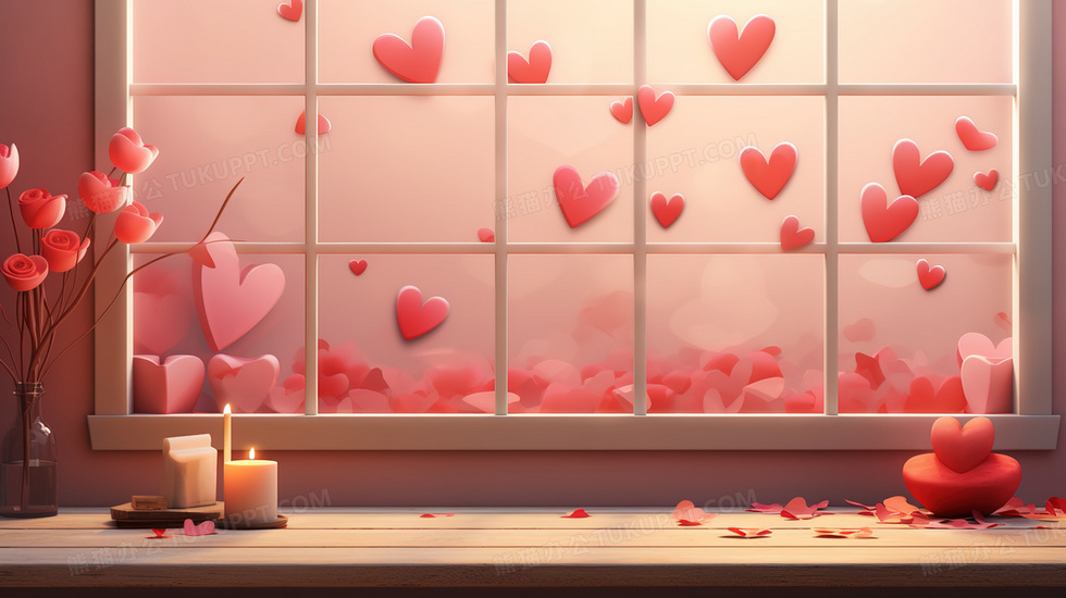 本作品内容为窗户边的桌上的C4D粉红色爱心插画, 格式为 jpg, 大小4 MB, 图片尺寸为2912 x 1632, 源文件无水印, 欢迎使用熊猫办公。 如认为平台内容涉嫌侵权,可通过邮件:tousu@tukuppt.com提出书面通知,我们将及时处理。