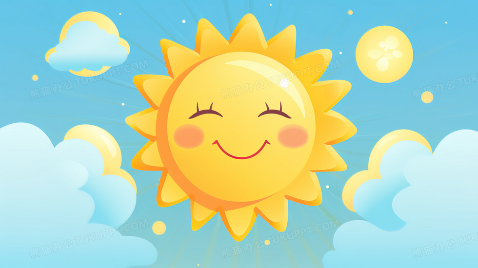 本作品内容为蓝天中金灿灿的微笑太阳插画, 格式为 jpg, 大小4 MB, 图片尺寸为2912 x 1632, 源文件无水印, 欢迎使用熊猫办公。 如认为平台内容涉嫌侵权,可通过邮件:tousu@tukuppt.com提出书面通知,我们将及时处理。