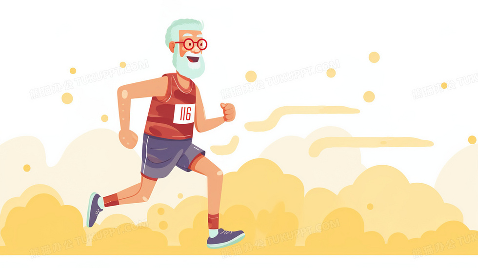 本作品内容为彩色跑步锻炼的老爷爷插画, 格式为 jpg, 大小3 MB, 图片尺寸为2912 x 1632, 源文件无水印, 欢迎使用熊猫办公。 如认为平台内容涉嫌侵权,可通过邮件:tousu@tukuppt.com提出书面通知,我们将及时处理。