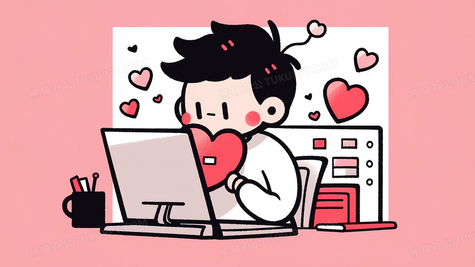 本作品内容为电脑前工作的男士插画, 格式为 jpg, 大小2 MB, 图片尺寸为2912 x 1632, 源文件无水印, 欢迎使用熊猫办公。 如认为平台内容涉嫌侵权,可通过邮件:tousu@tukuppt.com提出书面通知,我们将及时处理。