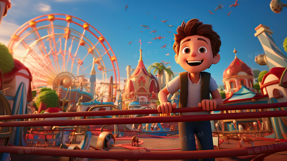 本作品内容为卡通男孩游乐场玩耍开心娱乐插画, 格式为 jpg, 大小3 MB, 图片尺寸为2912 x 1632, 源文件无水印, 欢迎使用熊猫办公。 如认为平台内容涉嫌侵权,可通过邮件:tousu@tukuppt.com提出书面通知,我们将及时处理。
