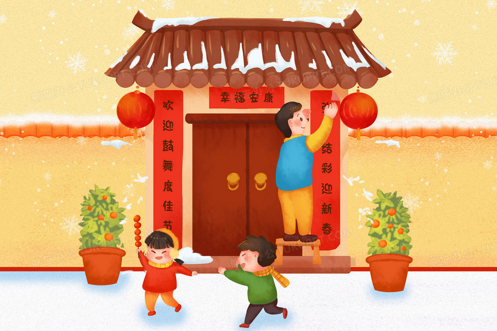 本作品内容为小年家人户外贴对联插画, 格式为 psd, 大小84 MB, 请使用软件PhotoShop(CC)打开, 源文件无水印, 欢迎使用熊猫办公。 如认为平台内容涉嫌侵权,可通过邮件:tousu@tukuppt.com提出书面通知,我们将及时处理。