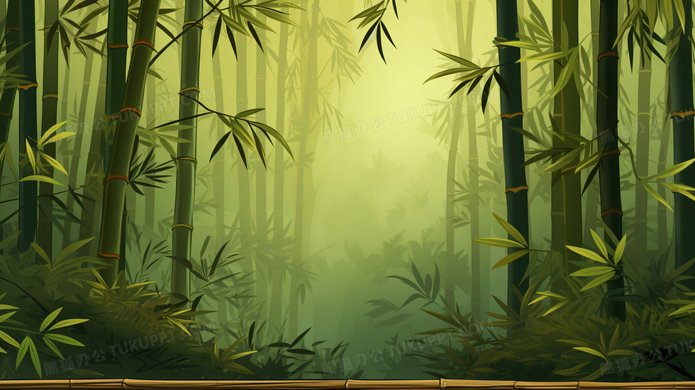 本作品内容为茂密翠绿的竹林插画, 格式为 jpg, 大小3 MB, 图片尺寸为2912 x 1632, 源文件无水印, 欢迎使用熊猫办公。 如认为平台内容涉嫌侵权,可通过邮件:tousu@tukuppt.com提出书面通知,我们将及时处理。
