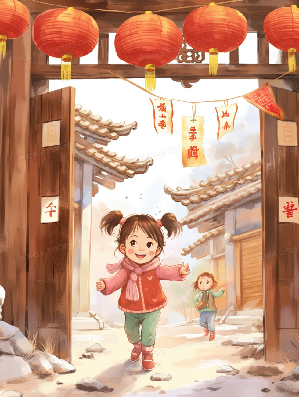 本作品内容为在老家过年快乐玩耍的小女孩插画, 格式为 jpg, 大小5 MB, 图片尺寸为1856 x 2464, 源文件无水印, 欢迎使用熊猫办公。 如认为平台内容涉嫌侵权,可通过邮件:tousu@tukuppt.com提出书面通知,我们将及时处理。