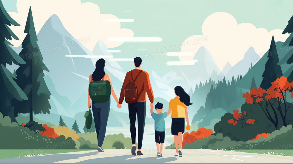 本作品内容为牵着手在户外散步的一家人风景插画, 格式为 jpg, 大小4 MB, 图片尺寸为2912 x 1632, 源文件无水印, 欢迎使用熊猫办公。 如认为平台内容涉嫌侵权,可通过邮件:tousu@tukuppt.com提出书面通知,我们将及时处理。