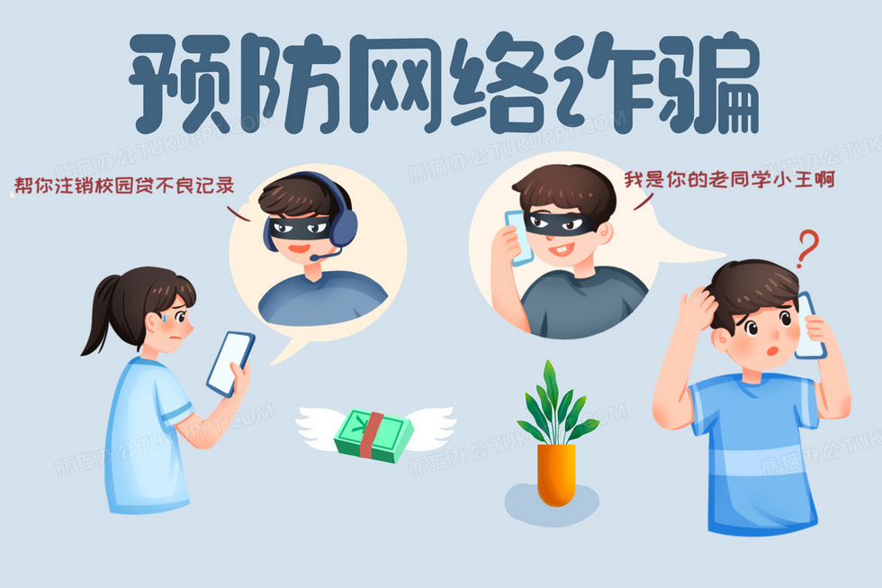 本作品内容为预防网络诈骗组图之校园网贷插画, 格式为 psd, 大小4 MB, 请使用软件PhotoShop(CC)打开, 源文件无水印, 欢迎使用熊猫办公。 如认为平台内容涉嫌侵权,可通过邮件:tousu@tukuppt.com提出书面通知,我们将及时处理。