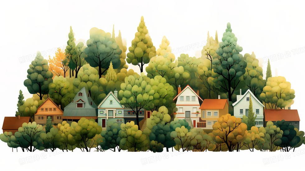 本作品内容为被树木环绕的城市建筑插画, 格式为 jpg, 大小6 MB, 图片尺寸为2912 x 1632, 源文件无水印, 欢迎使用熊猫办公。 如认为平台内容涉嫌侵权,可通过邮件:tousu@tukuppt.com提出书面通知,我们将及时处理。
