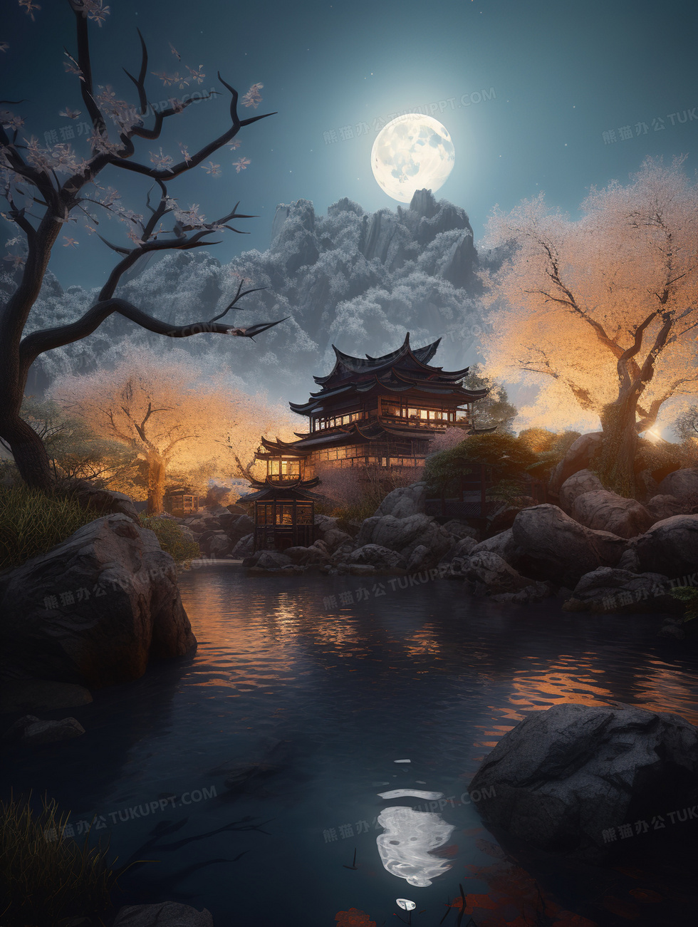本作品内容为中国风唯美月下古建筑山水风景插画, 格式为 jpg, 大小7 MB, 图片尺寸为1856 x 2464, 源文件无水印, 欢迎使用熊猫办公。 如认为平台内容涉嫌侵权,可通过邮件:tousu@tukuppt.com提出书面通知,我们将及时处理。