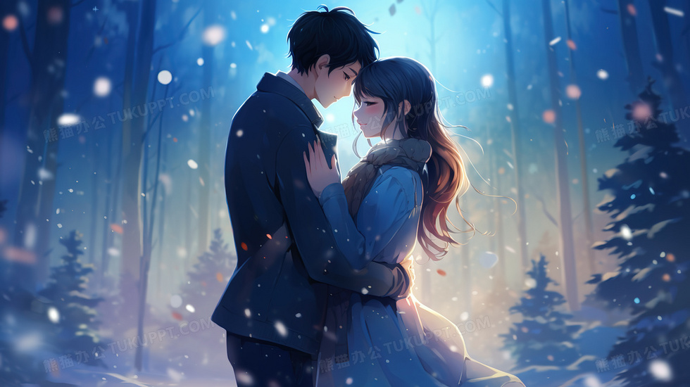 本作品内容为雪中相拥面对面的情侣情人节插画, 格式为 jpg, 大小4 MB, 图片尺寸为2912 x 1632, 源文件无水印, 欢迎使用熊猫办公。 如认为平台内容涉嫌侵权,可通过邮件:tousu@tukuppt.com提出书面通知,我们将及时处理。