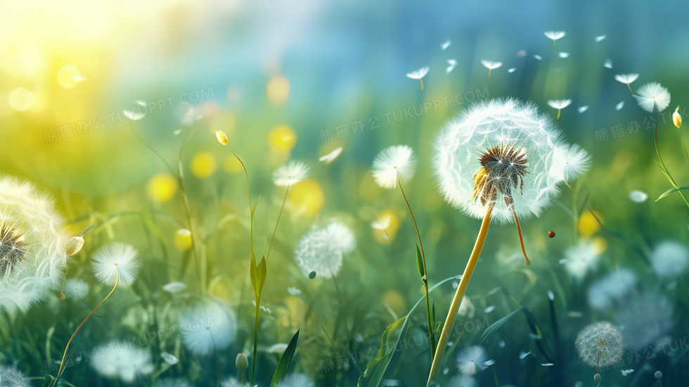 本作品内容为春天绿色草地里的蒲公英唯美插画, 格式为 jpg, 大小5 MB, 图片尺寸为2912 x 1632, 源文件无水印, 欢迎使用熊猫办公。 如认为平台内容涉嫌侵权,可通过邮件:tousu@tukuppt.com提出书面通知,我们将及时处理。