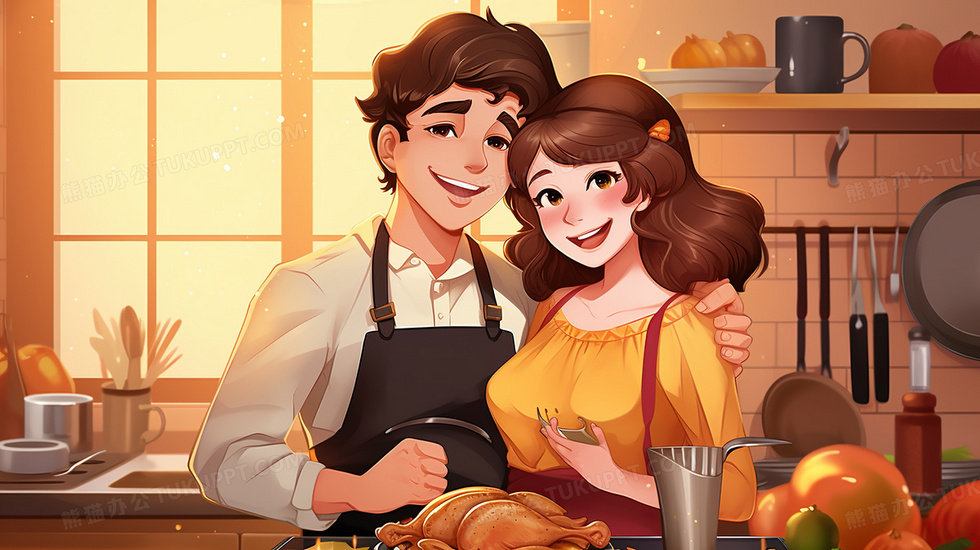 本作品内容为感恩节情侣烤鸡一起做饭烹饪美食插画, 格式为 jpg, 大小5 MB, 图片尺寸为2912 x 1632, 源文件无水印, 欢迎使用熊猫办公。 如认为平台内容涉嫌侵权,可通过邮件:tousu@tukuppt.com提出书面通知,我们将及时处理。