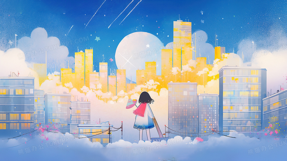 本作品内容为粉刷城市的女孩梦幻唯美插画, 格式为 jpg, 大小8 MB, 图片尺寸为2912 x 1632, 源文件无水印, 欢迎使用熊猫办公。 如认为平台内容涉嫌侵权,可通过邮件:tousu@tukuppt.com提出书面通知,我们将及时处理。