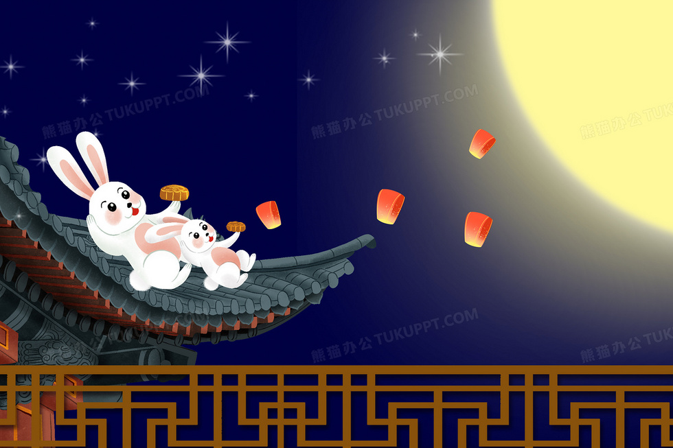 本作品内容为卡通兔子屋顶中国风中秋插画, 格式为 psd, 大小27 MB, 请使用软件PhotoShop(CS6)打开, 源文件无水印, 欢迎使用熊猫办公。 如认为平台内容涉嫌侵权,可通过邮件:tousu@tukuppt.com提出书面通知,我们将及时处理。