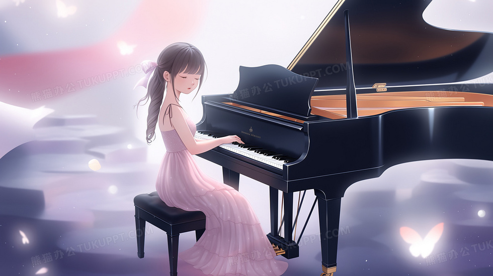 本作品内容为可爱的长发女孩穿着美丽的晚礼服在弹钢琴创意插画, 格式为 jpg, 大小2 MB, 图片尺寸为2912 x 1632, 源文件无水印, 欢迎使用熊猫办公。 如认为平台内容涉嫌侵权,可通过邮件:tousu@tukuppt.com提出书面通知,我们将及时处理。