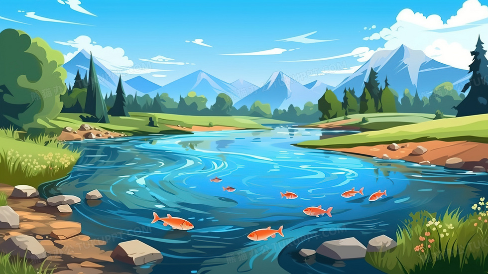 本作品内容为绿色夏季清凉小溪风景插画, 格式为 jpg, 大小5 MB, 图片尺寸为2912 x 1632, 源文件无水印, 欢迎使用熊猫办公。 如认为平台内容涉嫌侵权,可通过邮件:tousu@tukuppt.com提出书面通知,我们将及时处理。