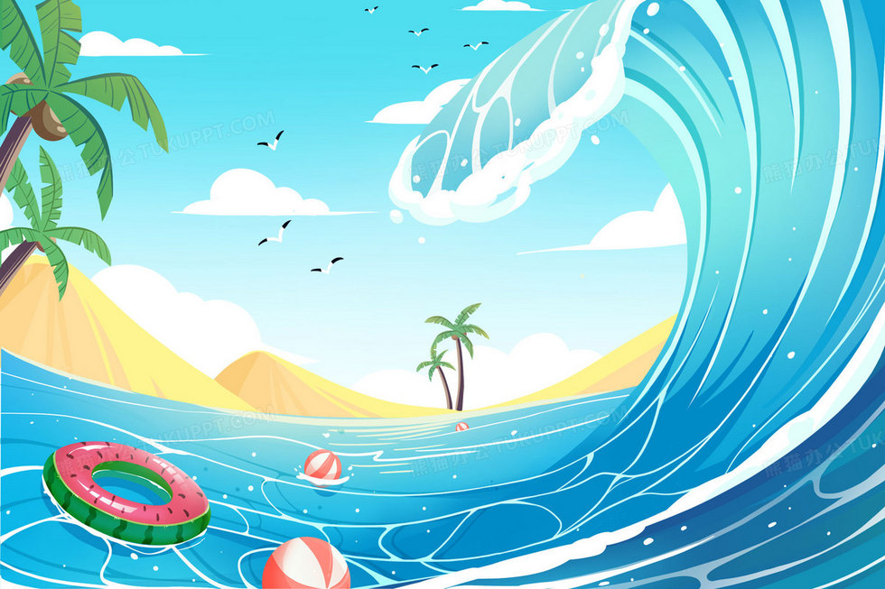 本作品内容为夏天在海面上冲浪场景插画, 格式为 psd, 大小14 MB, 请使用软件PhotoShop(CC)打开, 源文件无水印, 欢迎使用熊猫办公。 如认为平台内容涉嫌侵权,可通过邮件:tousu@tukuppt.com提出书面通知,我们将及时处理。