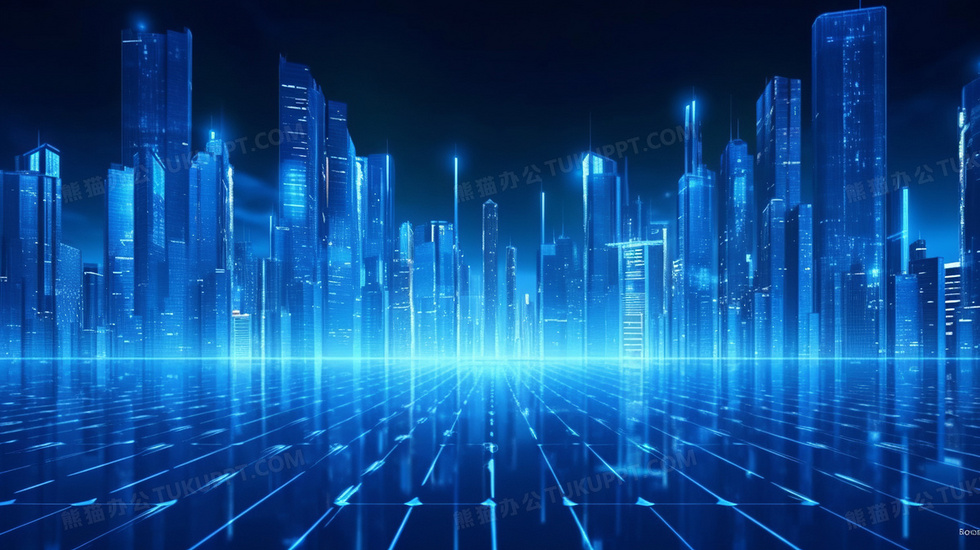 本作品内容为蓝色酷炫科技城市背景, 格式为 jpg, 大小3 MB, 图片尺寸为2912 x 1632, 源文件无水印, 欢迎使用熊猫办公。 如认为平台内容涉嫌侵权,可通过邮件:tousu@tukuppt.com提出书面通知,我们将及时处理。