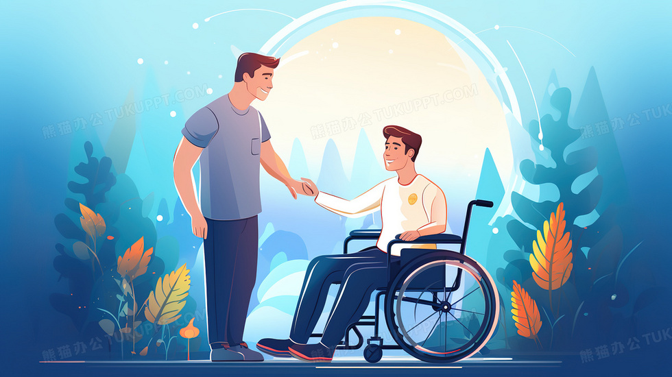 本作品内容为关爱残疾人卡通人物插画, 格式为 jpg, 大小5 MB, 图片尺寸为2912 x 1632, 源文件无水印, 欢迎使用熊猫办公。 如认为平台内容涉嫌侵权,可通过邮件:tousu@tukuppt.com提出书面通知,我们将及时处理。