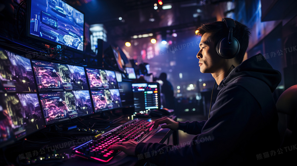 本作品内容为电子竞技比赛现场教练裁判认真的盯着显示屏观看比赛特写图片, 格式为 jpg, 大小6 MB, 图片尺寸为2912 x 1632, 源文件无水印, 欢迎使用熊猫办公。 如认为平台内容涉嫌侵权,可通过邮件:tousu@tukuppt.com提出书面通知,我们将及时处理。
