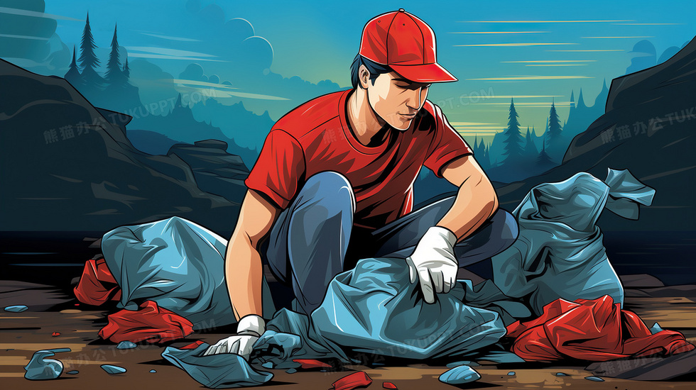 本作品内容为环保志愿者捡垃圾保护环境插画, 格式为 jpg, 大小6 MB, 图片尺寸为2912 x 1632, 源文件无水印, 欢迎使用熊猫办公。 如认为平台内容涉嫌侵权,可通过邮件:tousu@tukuppt.com提出书面通知,我们将及时处理。