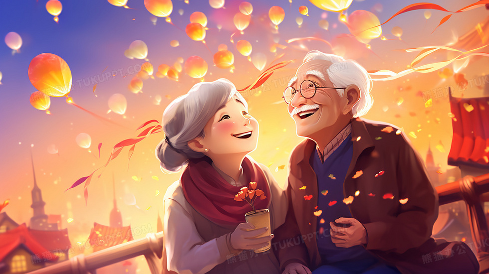 本作品内容为参加重阳节庆祝活动的老夫妻插画, 格式为 jpg, 大小4 MB, 图片尺寸为2912 x 1632, 源文件无水印, 欢迎使用熊猫办公。 如认为平台内容涉嫌侵权,可通过邮件:tousu@tukuppt.com提出书面通知,我们将及时处理。