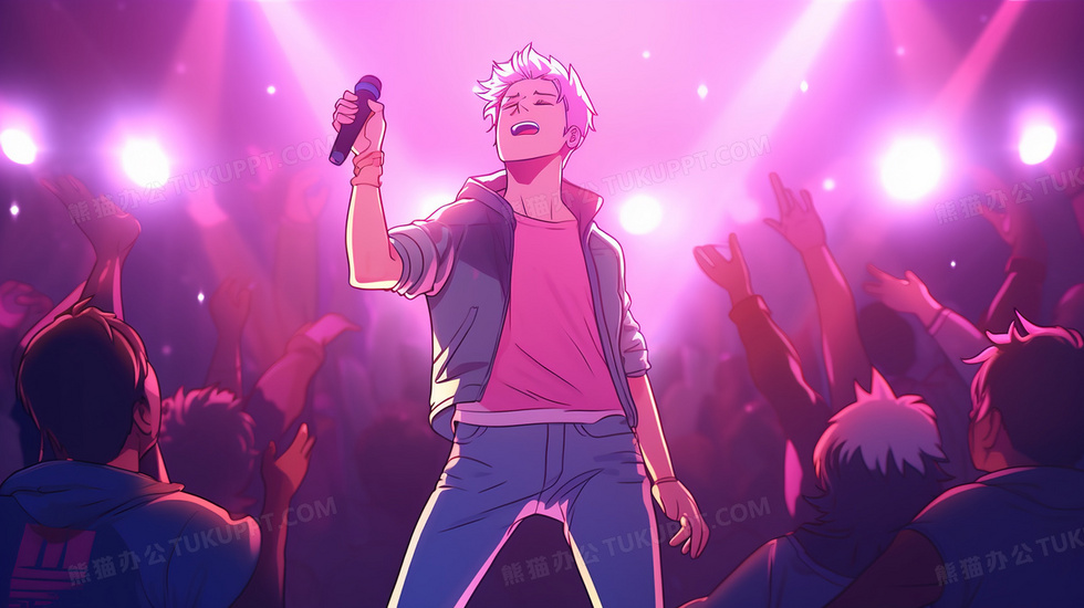 本作品内容为舞台上激情演唱的男歌手插画, 格式为 jpg, 大小4 MB, 图片尺寸为2912 x 1632, 源文件无水印, 欢迎使用熊猫办公。 如认为平台内容涉嫌侵权,可通过邮件:tousu@tukuppt.com提出书面通知,我们将及时处理。