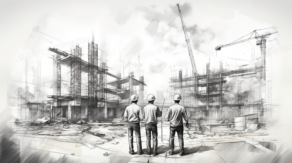 本作品内容为黑白素描风安全生产工程师监督工地施工建设场景创意插画, 格式为 jpg, 大小7 MB, 图片尺寸为2912 x 1632, 源文件无水印, 欢迎使用熊猫办公。 如认为平台内容涉嫌侵权,可通过邮件:tousu@tukuppt.com提出书面通知,我们将及时处理。