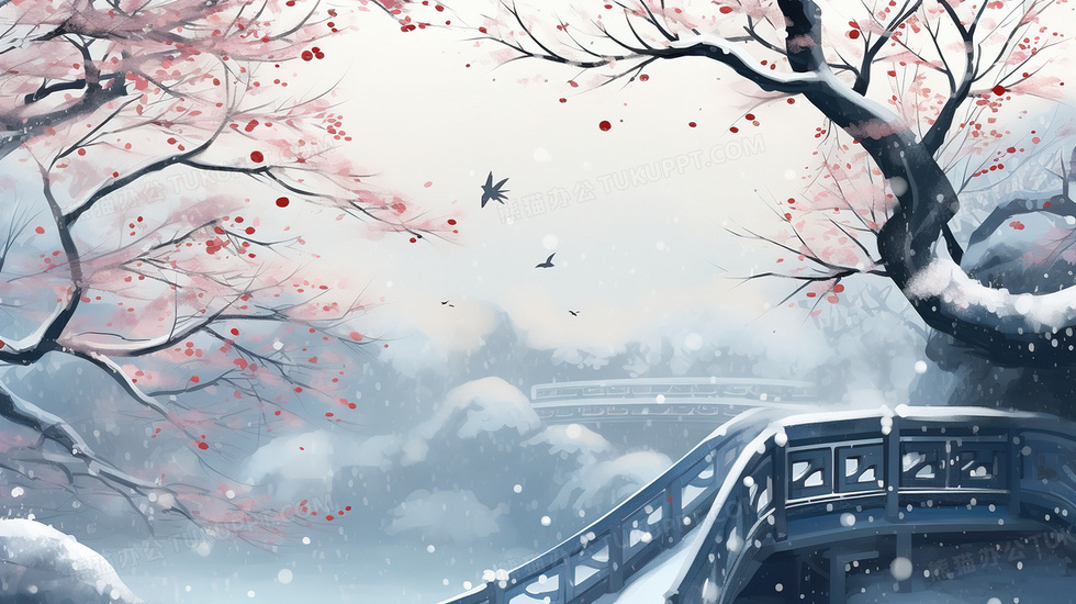 本作品内容为冬季森林寺庙里的小桥流水插画, 格式为 jpg, 大小7 MB, 图片尺寸为2912 x 1632, 源文件无水印, 欢迎使用熊猫办公。 如认为平台内容涉嫌侵权,可通过邮件:tousu@tukuppt.com提出书面通知,我们将及时处理。