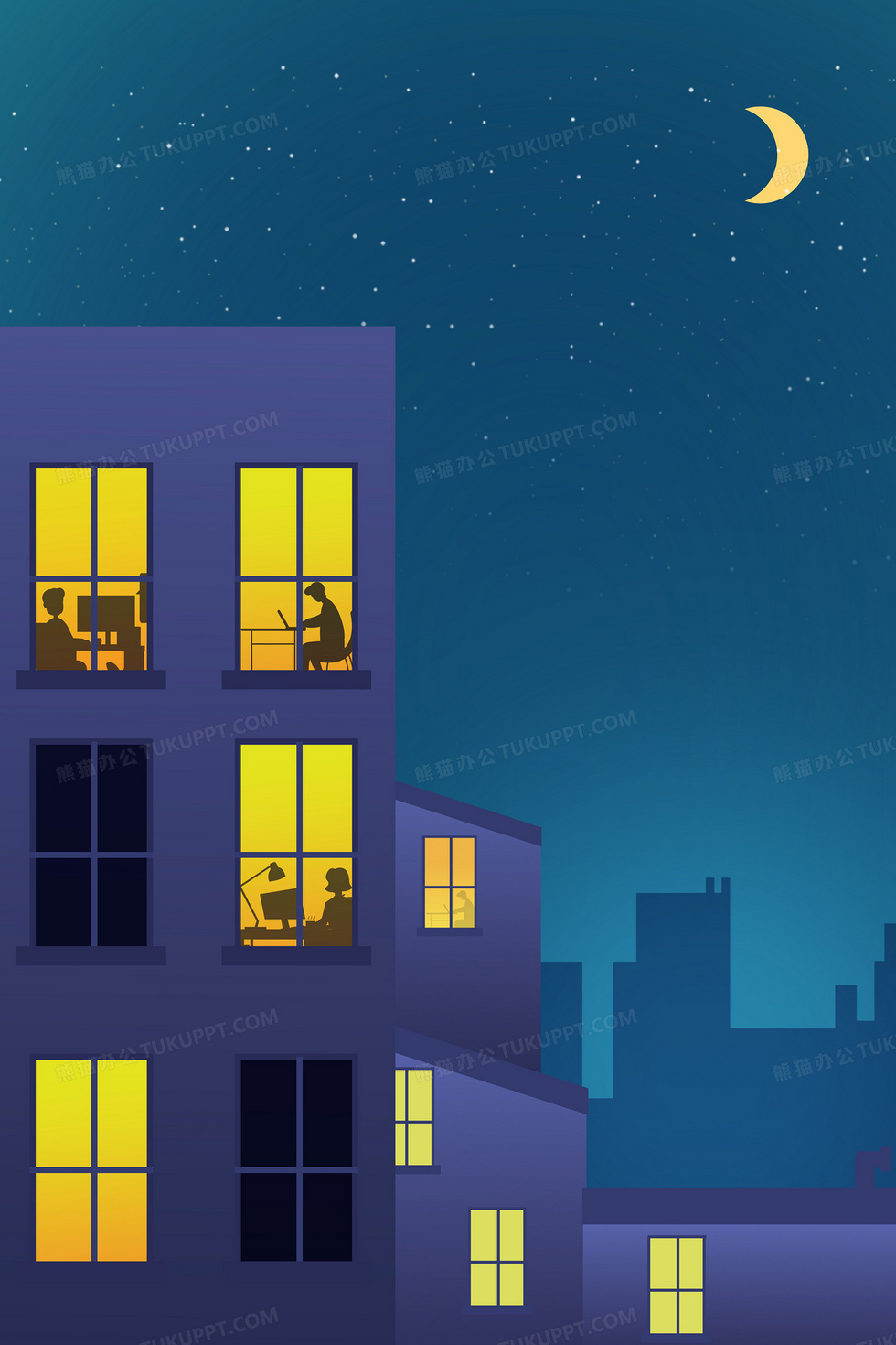 本作品内容为简约深夜加班熬夜背景, 格式为 psd, 大小19 MB, 图片尺寸为3543 x 5315, 作品中背景图片无需修改, 源文件无水印,可以直接使用, 欢迎使用熊猫办公。 如认为平台内容涉嫌侵权,可通过邮件:tousu@tukuppt.com提出书面通知,我们将及时处理。