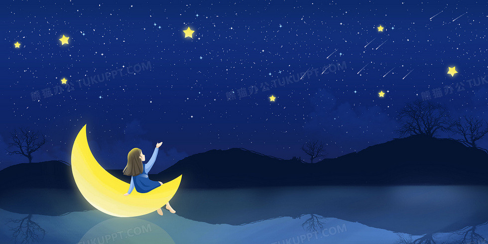 本作品内容为创意星空月亮女孩手绘卡通夜空背景, 格式为 psd, 大小16 MB, 图片尺寸为4724 x 2362, 作品中背景图片无需修改, 源文件无水印,可以直接使用, 欢迎使用熊猫办公。 如认为平台内容涉嫌侵权,可通过邮件:tousu@tukuppt.com提出书面通知,我们将及时处理。