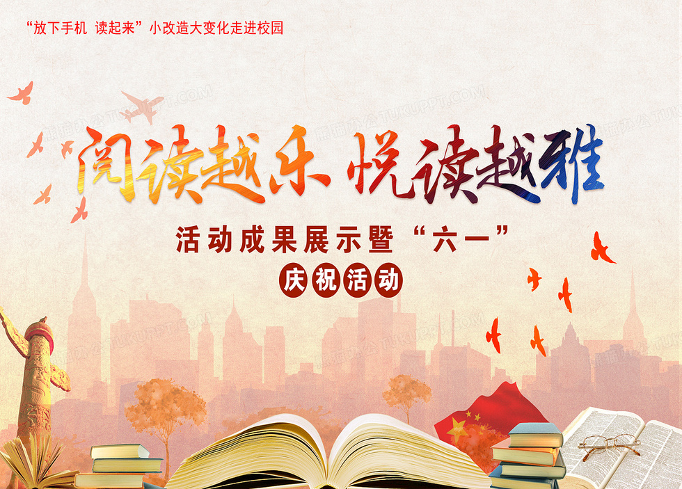 本作品内容为六一读书活动展板背景模板, 格式为 psd, 图片尺寸为4876 x 3500, 作品中背景图片无需修改, 源文件无水印,可以直接使用, 欢迎使用熊猫办公。 如认为平台内容涉嫌侵权,可通过邮件:tousu@tukuppt.com提出书面通知,我们将及时处理。