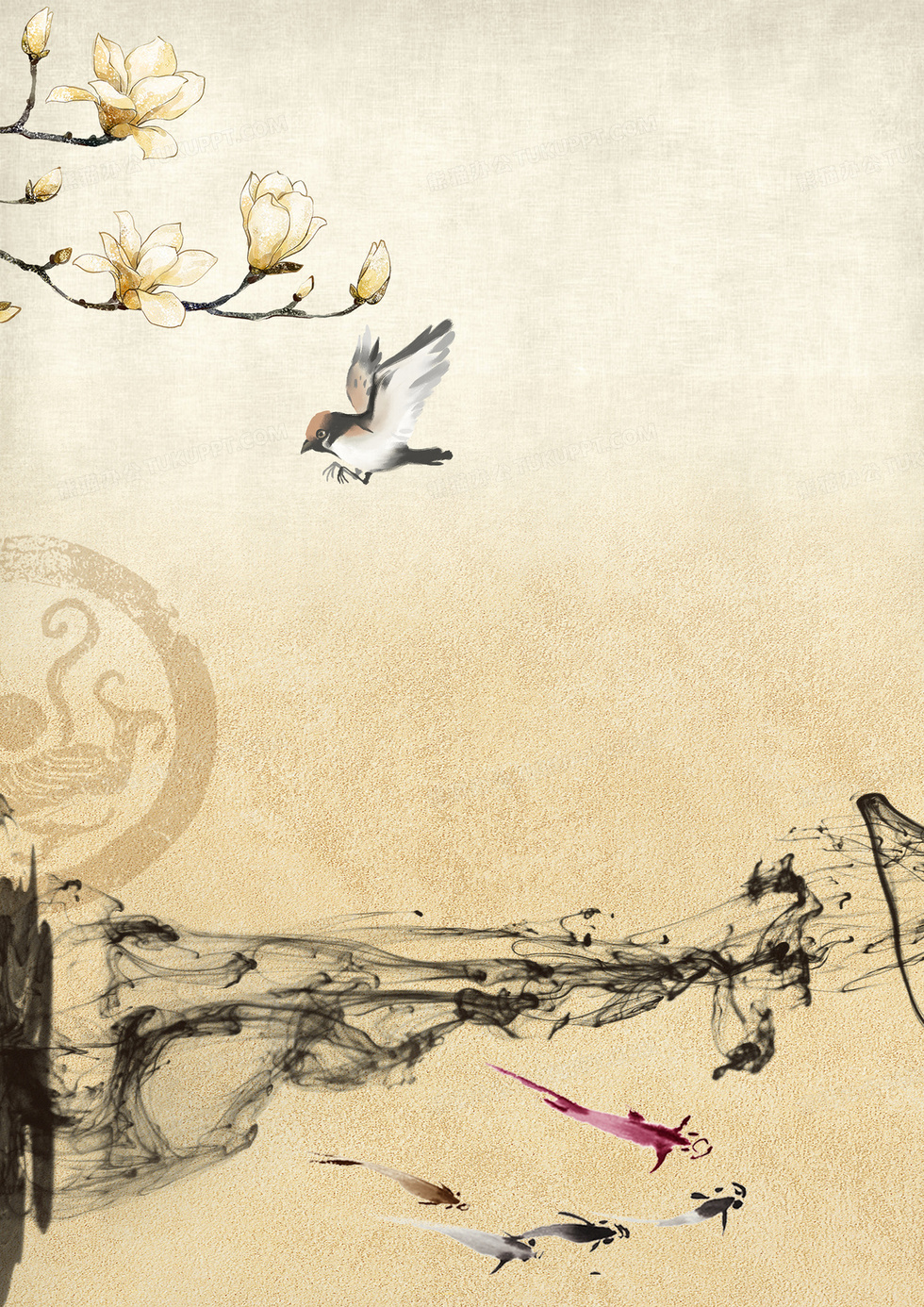 本作品内容为古风鱼鸟相称背景素材, 格式为 jpg, 图片尺寸为2480 x 3508, 作品中背景图片无需修改, 源文件无水印,可以直接使用, 欢迎使用熊猫办公。 如认为平台内容涉嫌侵权,可通过邮件:tousu@tukuppt.com提出书面通知,我们将及时处理。