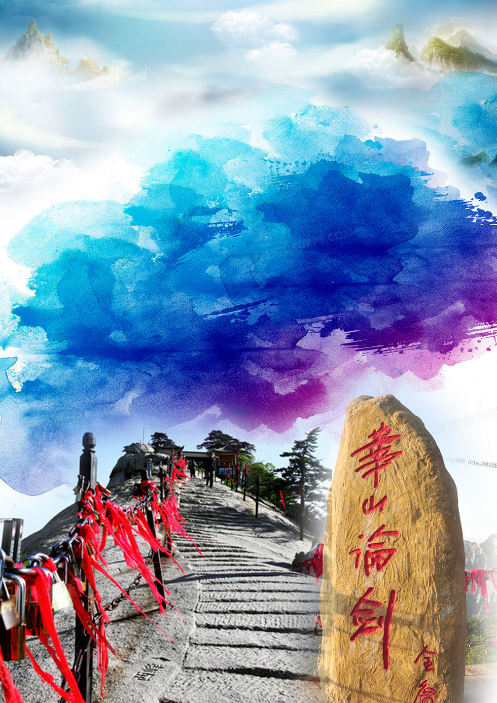 本作品内容为华山旅游宣传海报, 格式为 psd, 图片尺寸为2480 x 3508, 作品中背景图片无需修改, 源文件无水印,可以直接使用, 欢迎使用熊猫办公。 如认为平台内容涉嫌侵权,可通过邮件:tousu@tukuppt.com提出书面通知,我们将及时处理。