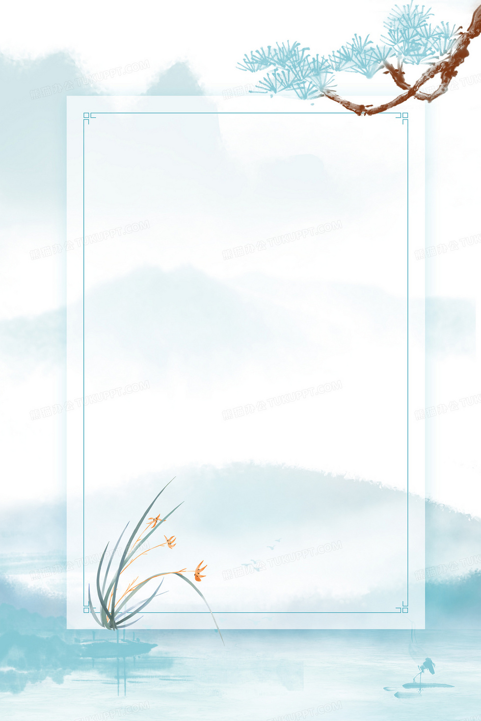 本作品内容为蓝色清新中国风水墨植物信封背景, 格式为 psd, 大小27 MB, 图片尺寸为3543 x 5315, 作品中背景图片无需修改, 源文件无水印,可以直接使用, 欢迎使用熊猫办公。 如认为平台内容涉嫌侵权,可通过邮件:tousu@tukuppt.com提出书面通知,我们将及时处理。