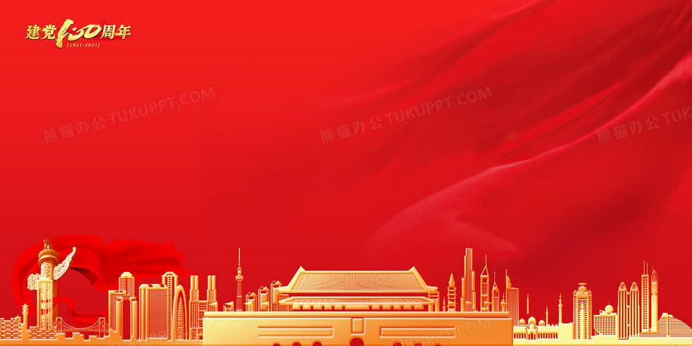 本作品内容为红金党政风建党100周年背景, 格式为 psd, 大小22 MB, 图片尺寸为4724 x 2362, 作品中背景图片无需修改, 源文件无水印,可以直接使用, 欢迎使用熊猫办公。 如认为平台内容涉嫌侵权,可通过邮件:tousu@tukuppt.com提出书面通知,我们将及时处理。