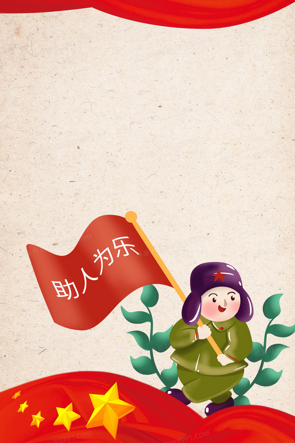 本作品内容为学雷锋好人好事雷锋背景, 格式为 psd, 大小105 MB, 图片尺寸为3543 x 5315, 作品中背景图片无需修改, 源文件无水印,可以直接使用, 欢迎使用熊猫办公。 如认为平台内容涉嫌侵权,可通过邮件:tousu@tukuppt.com提出书面通知,我们将及时处理。