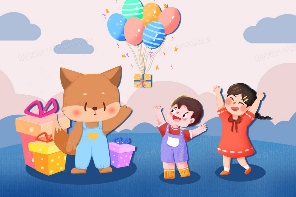 本作品内容为卡通儿童节可爱狐狸给小朋友赠送礼物小插画, 格式为 psd, 大小21 MB, 请使用软件PhotoShop(CC)打开, 源文件无水印, 欢迎使用熊猫办公。 如认为平台内容涉嫌侵权,可通过邮件:tousu@tukuppt.com提出书面通知,我们将及时处理。